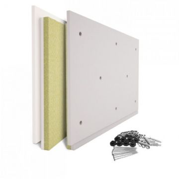 АкустикГипс (AcousticGyps) Basic – это сэндвич-панель, которая состоит из гипсоволокнистой плиты (ГВЛ) 20 мм и звукопоглощающего мягкого слоя — акустической минеральной ваты повышенной плотности. Служит для дополнительной звукоизоляции стен и потолков, увеличивая значения звукоизоляции до нормативных. В каждой сэндвич-панели предусмотрено восемь заводских отверстий для специальных виброизолирующих креплений, препятствующих передаче звука. Монтаж панелей производится бескаркасным способом, что значительно ускоряет время работы и уменьшает затраты на дополнительные материалы. В состав изделия включён комплект крепежа. Однако при необходимости можно докупить запасные комплекты крепежа для панелей АкустикГипс (AcousticGyps) Basic. Финишную отделку рекомендуется выполнять листами звукоизоляционного гипсокартона ГКЛЗ АкустикГипс .